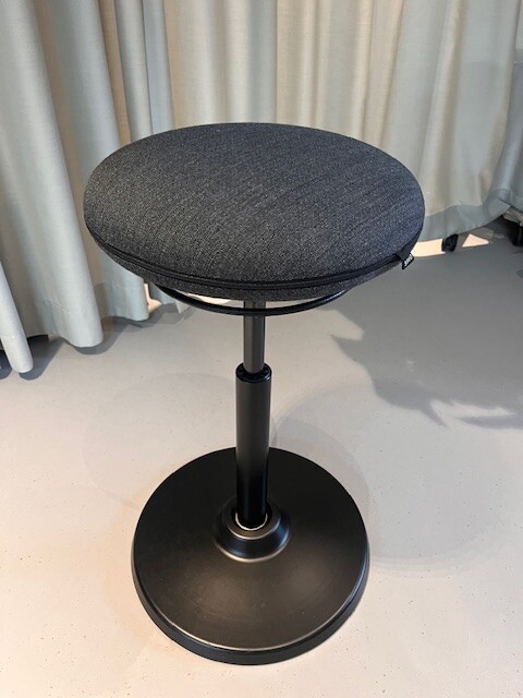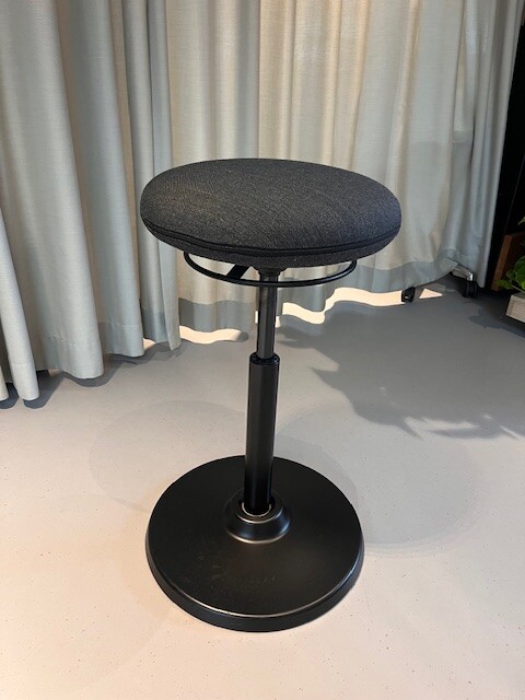 Seat in fabric (black). Column base in plastic (black). Height adjustable.