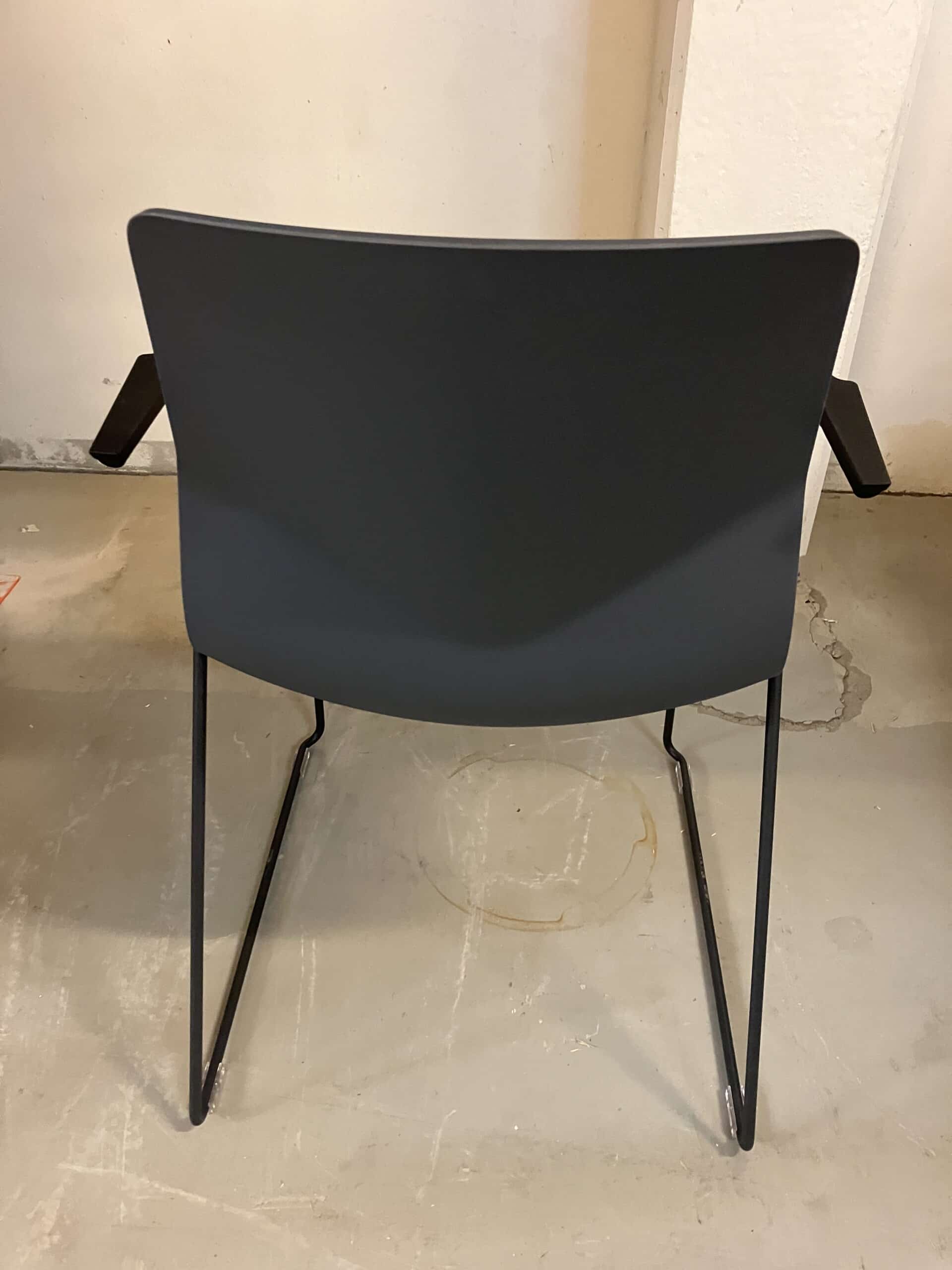 Seat and back in plastic (grey). With stand in metal (black).