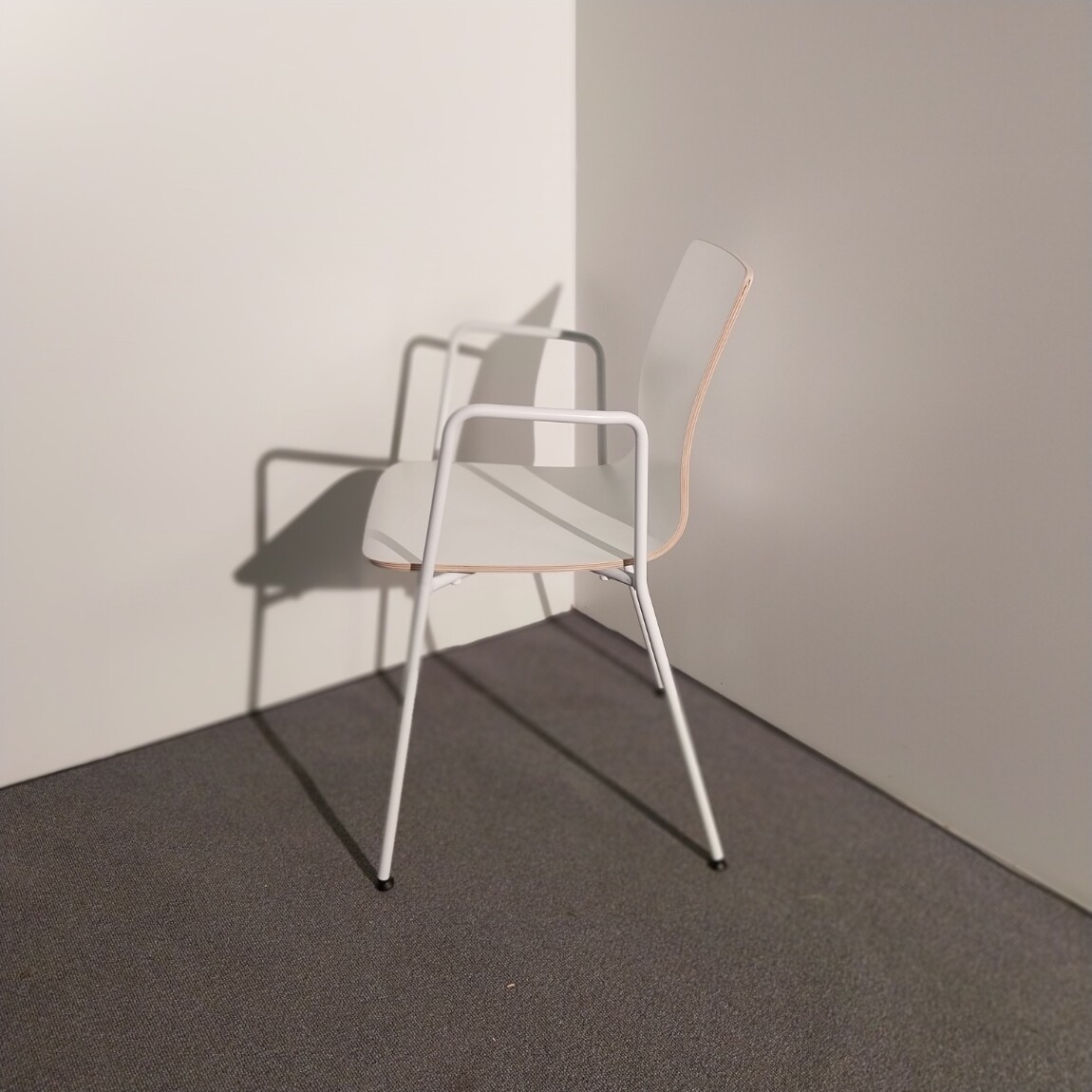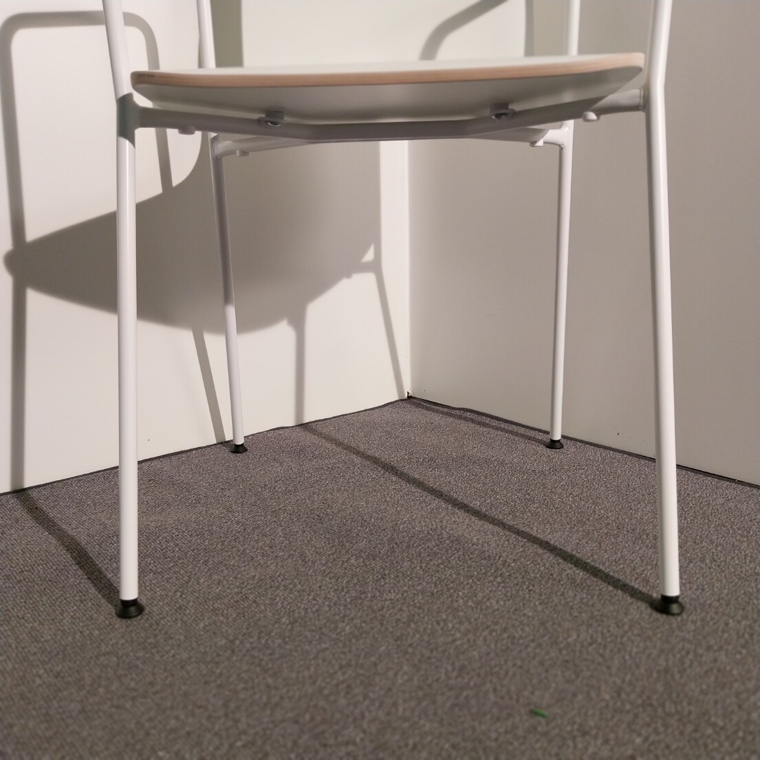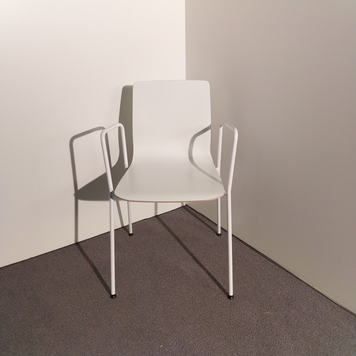 Seat and back in laminate (white). Legs in metal (white).