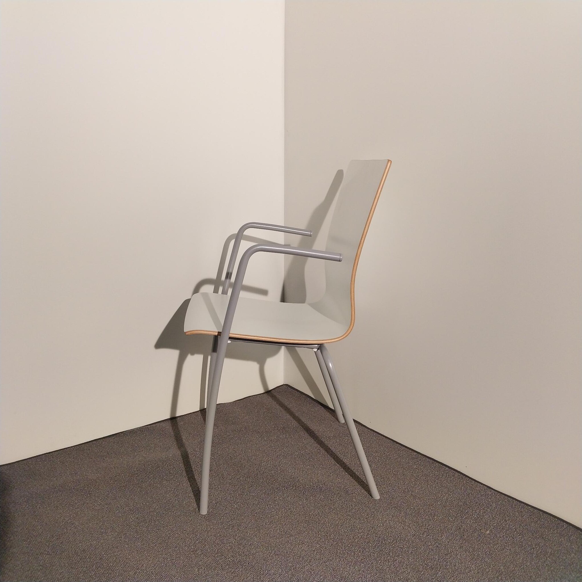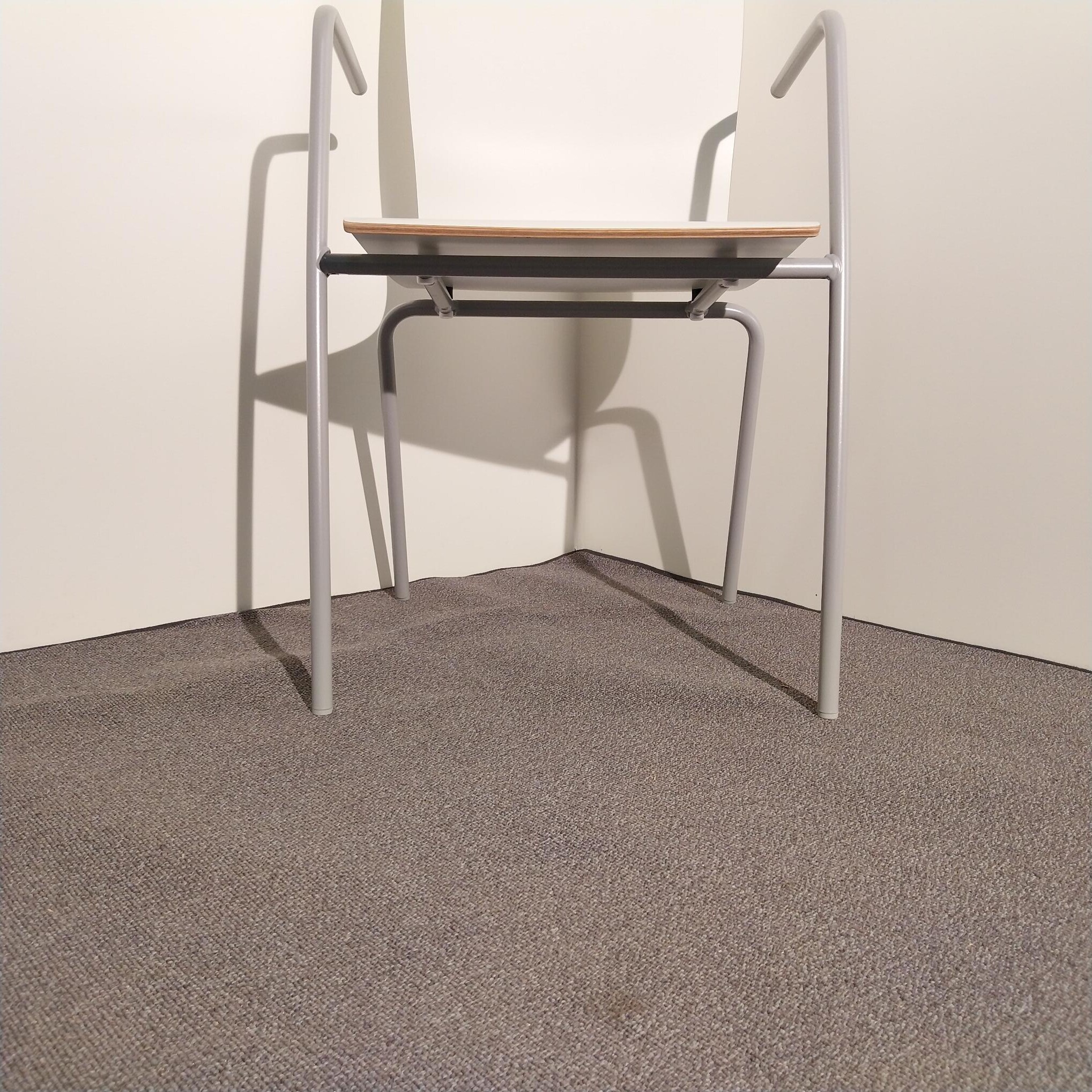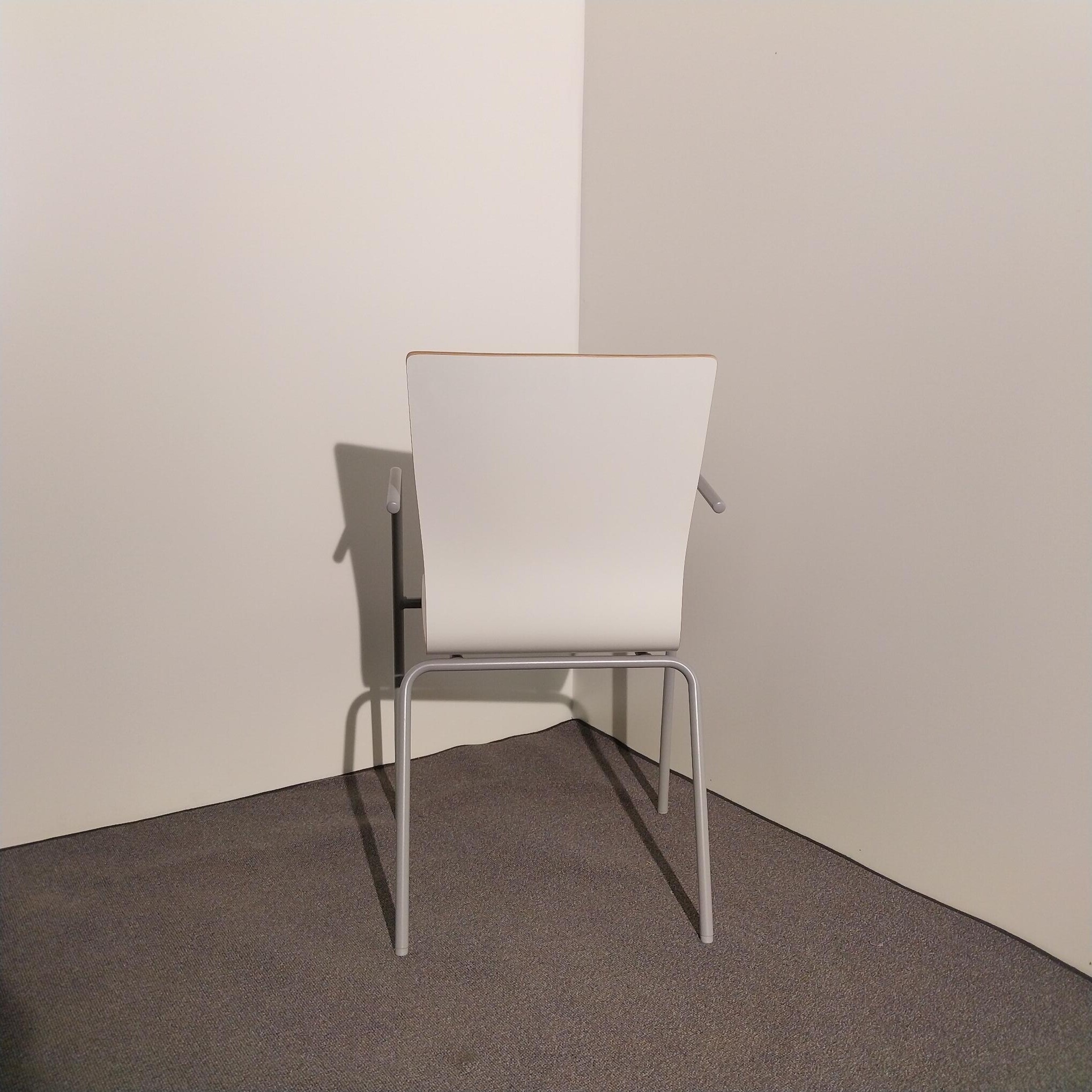 Seat and back in laminate (white). Legs in metal (grey).