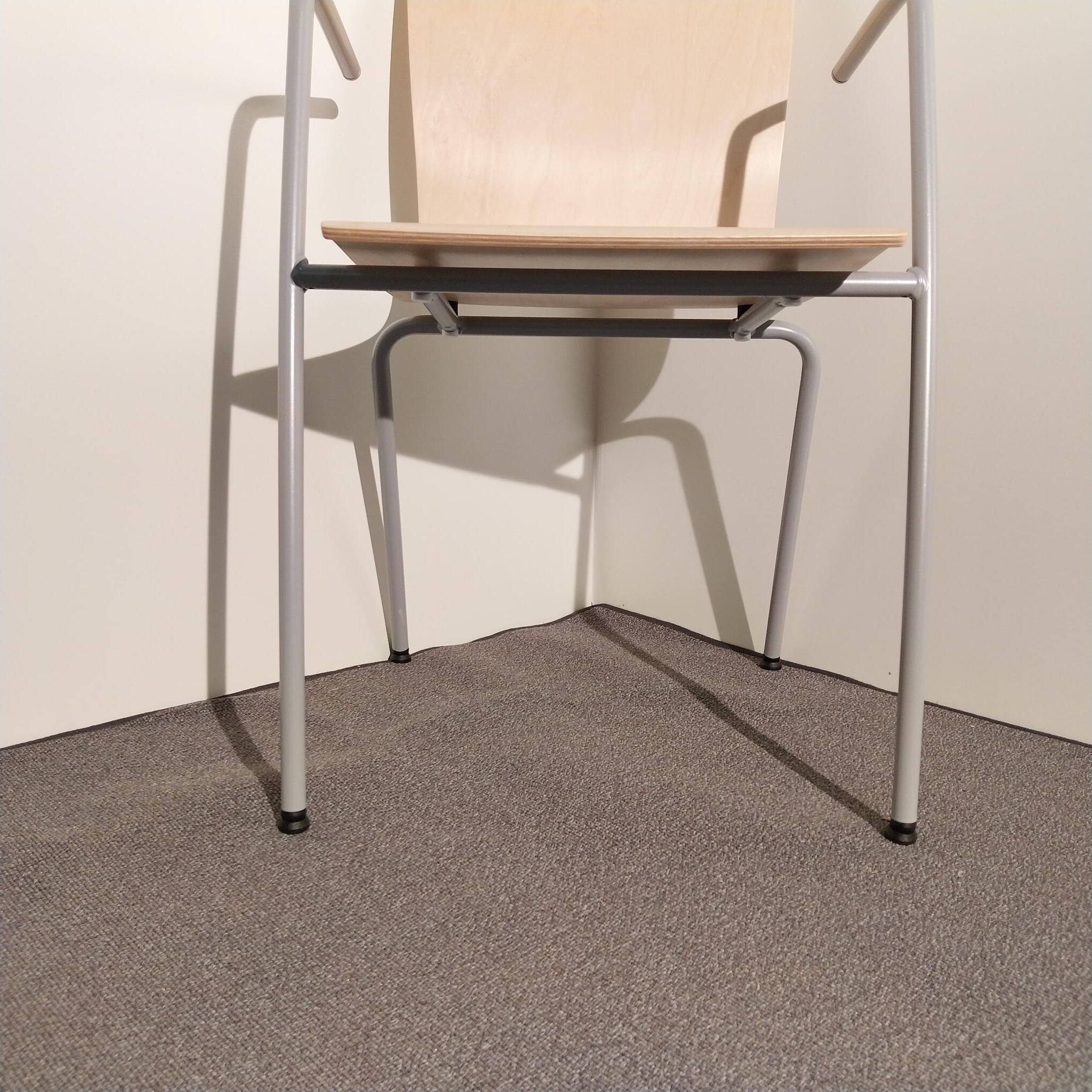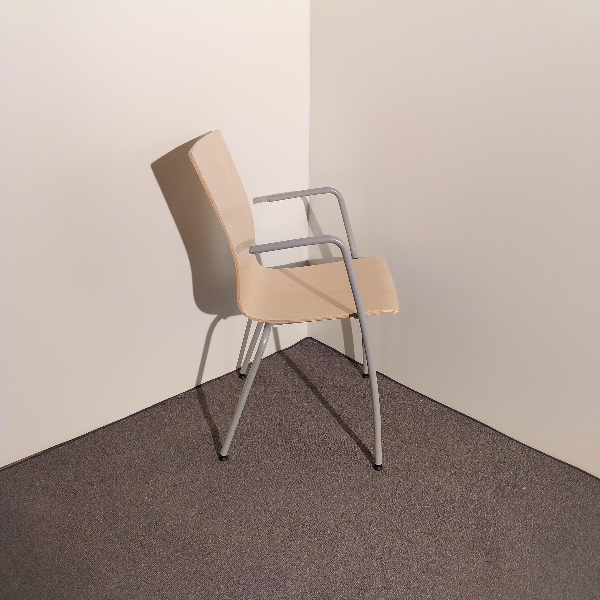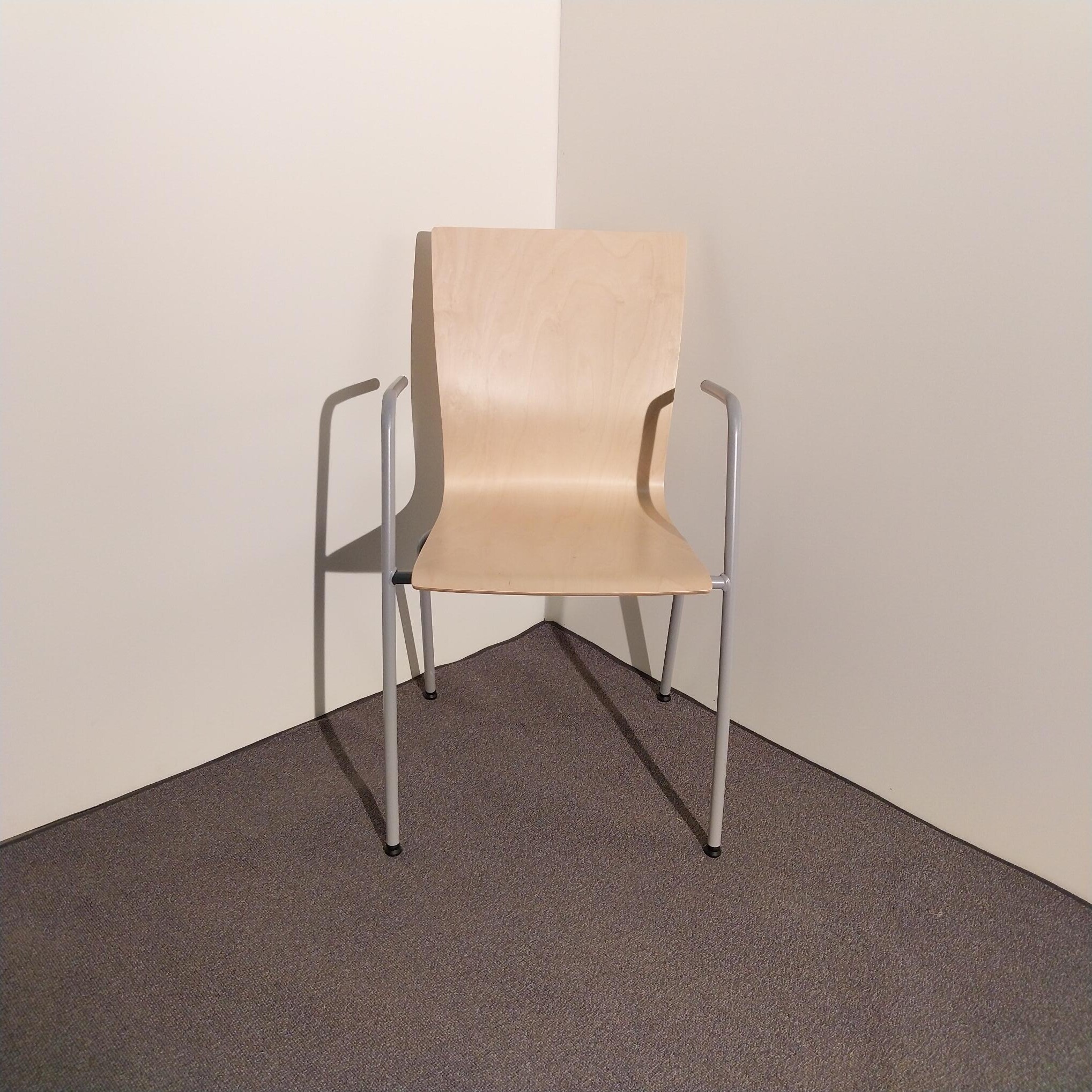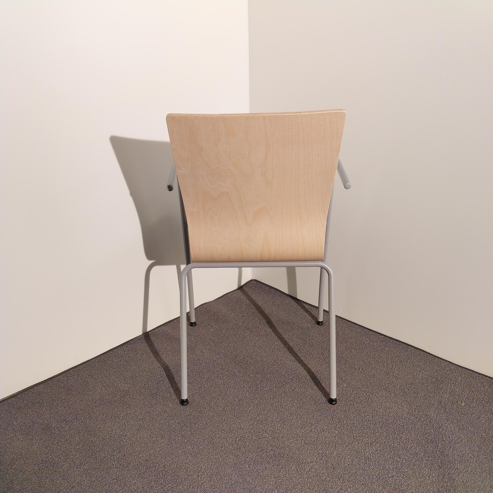 Seat and back in wood (birch). Legs in metal (silver).