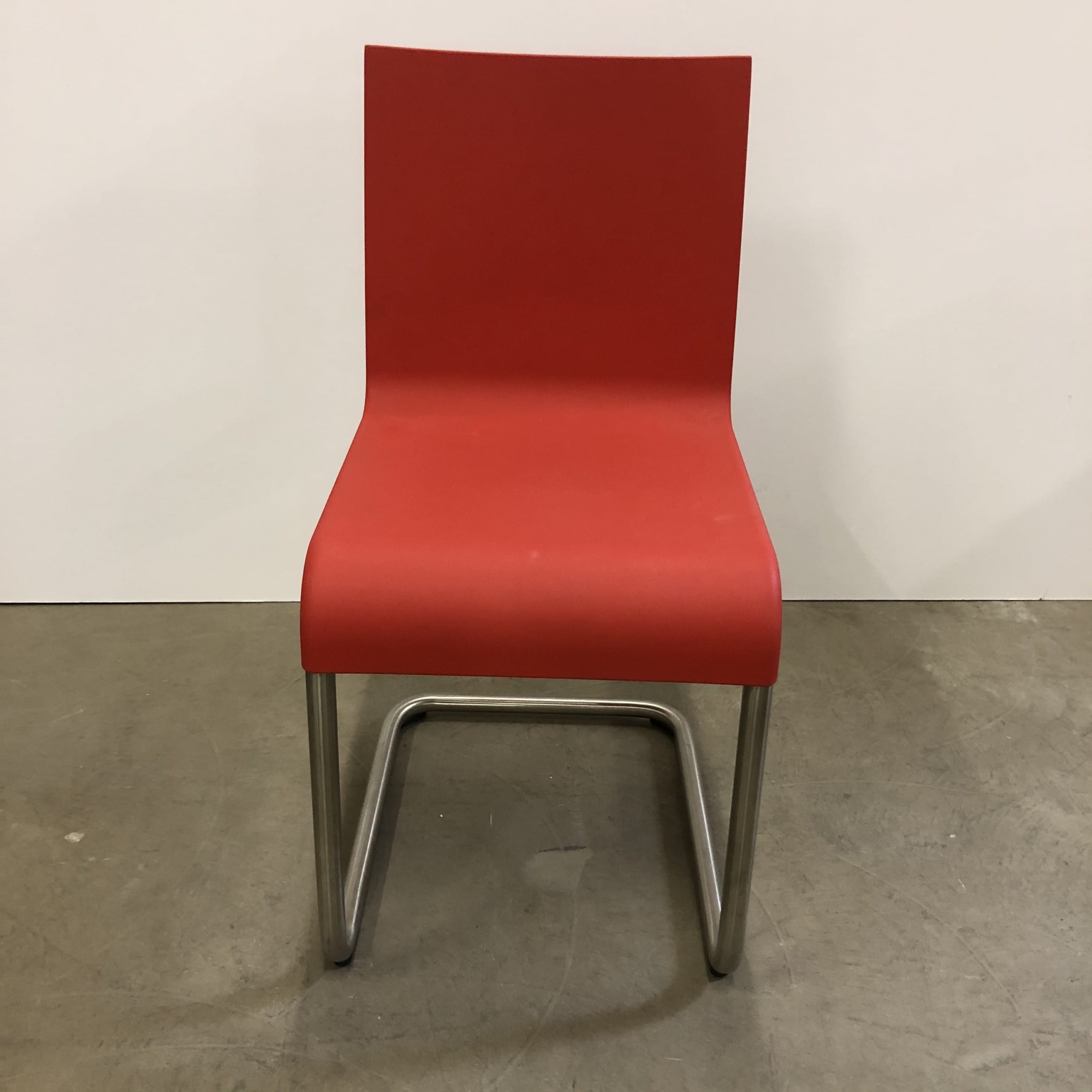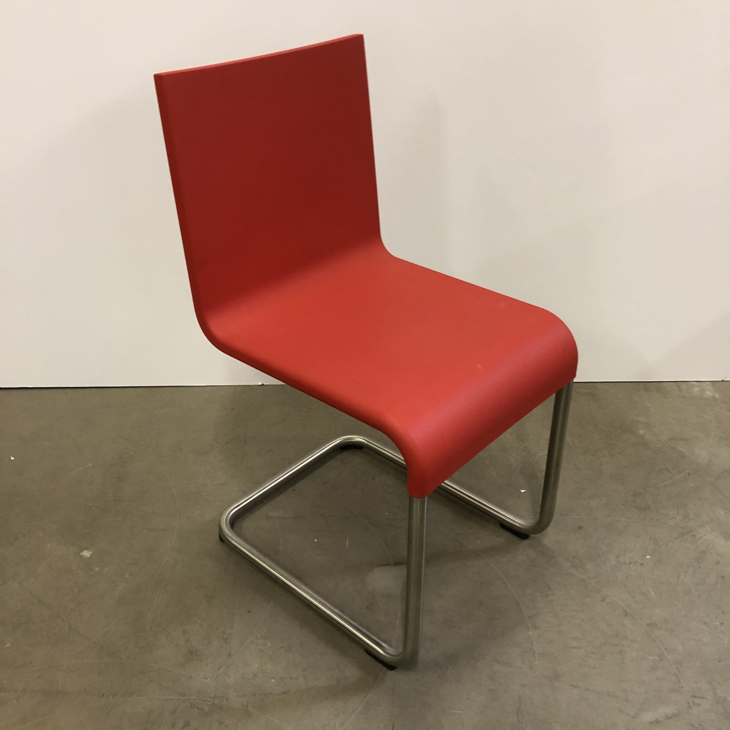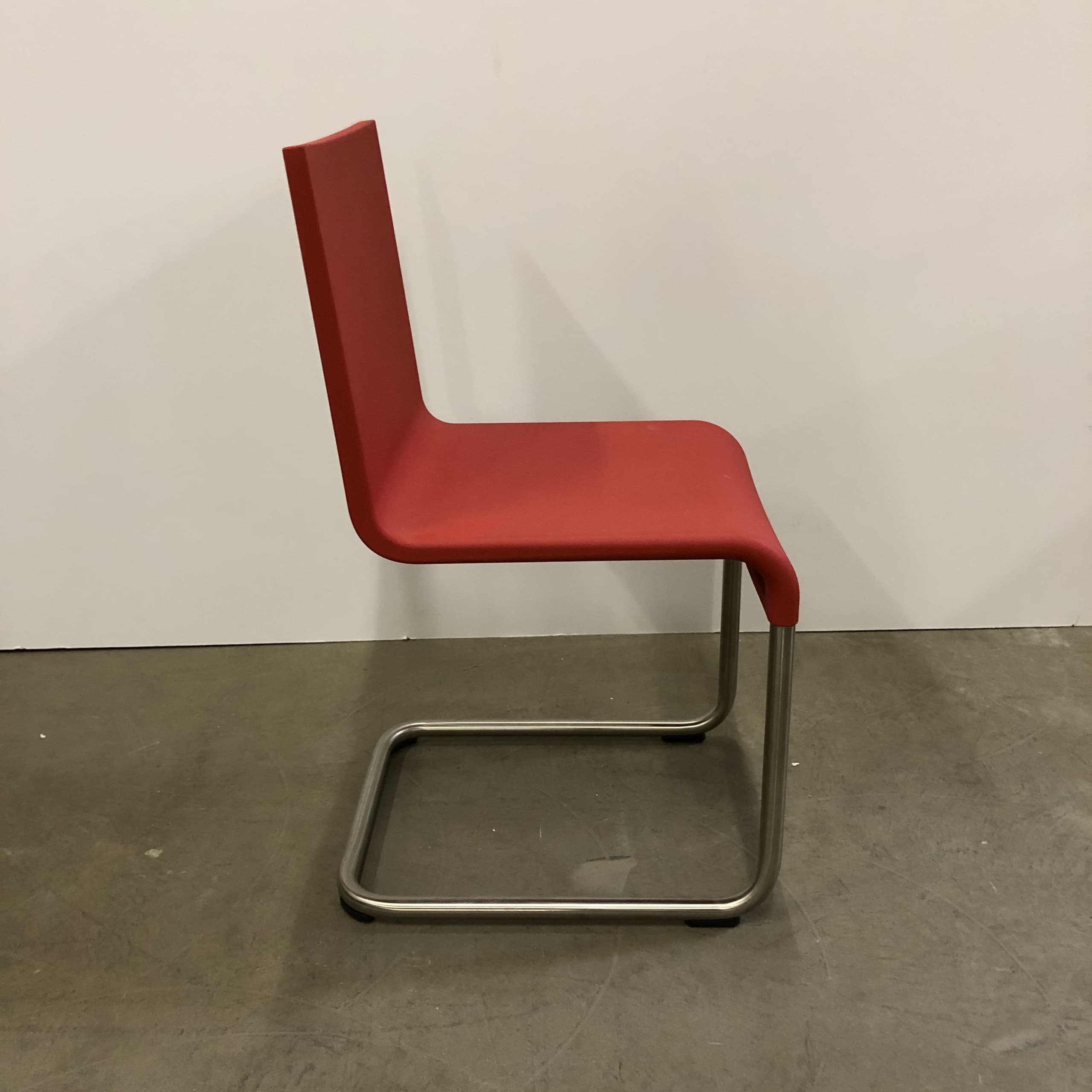 Seat and back in rubber (red). With stand in metal (aluminum).