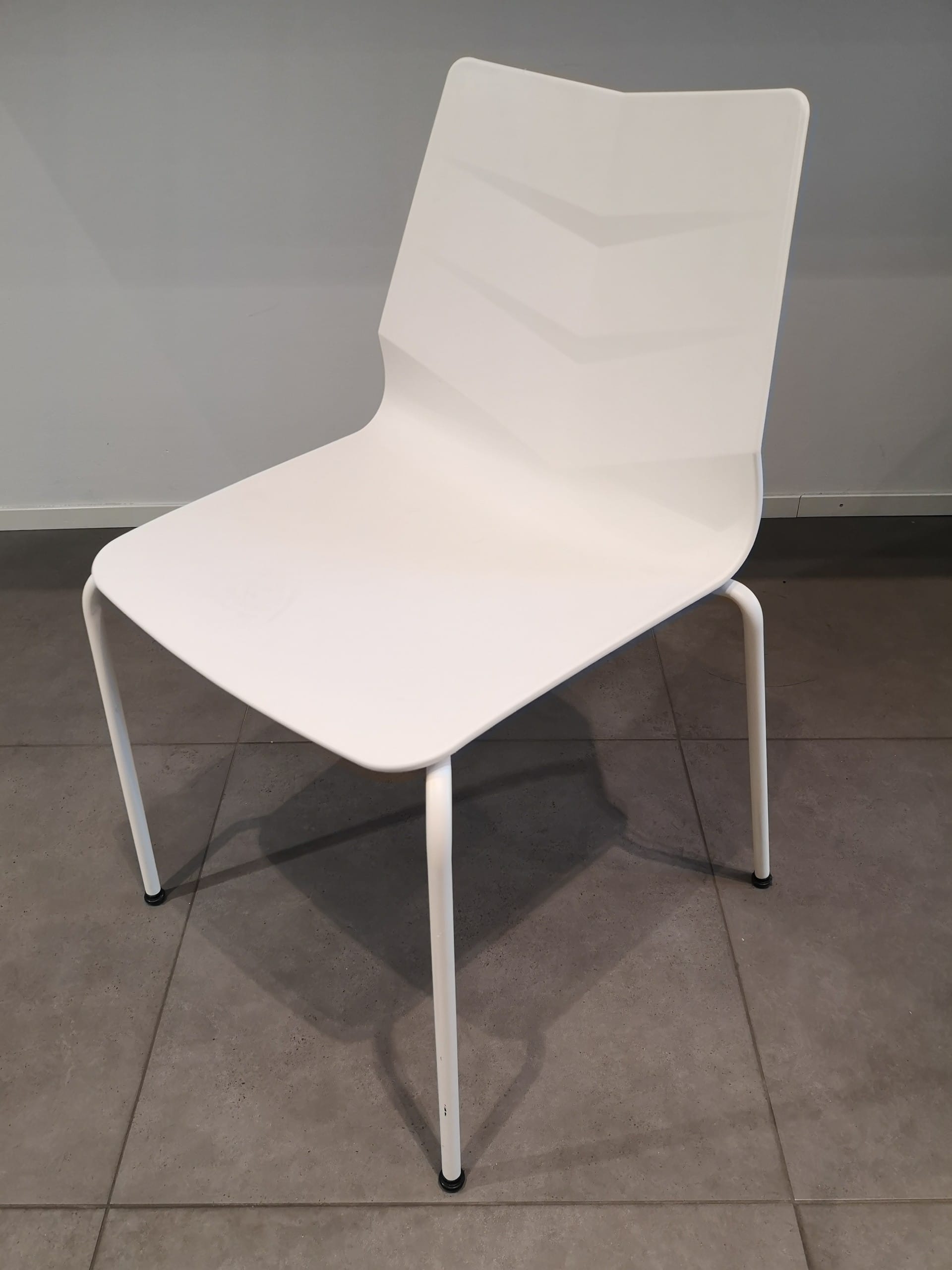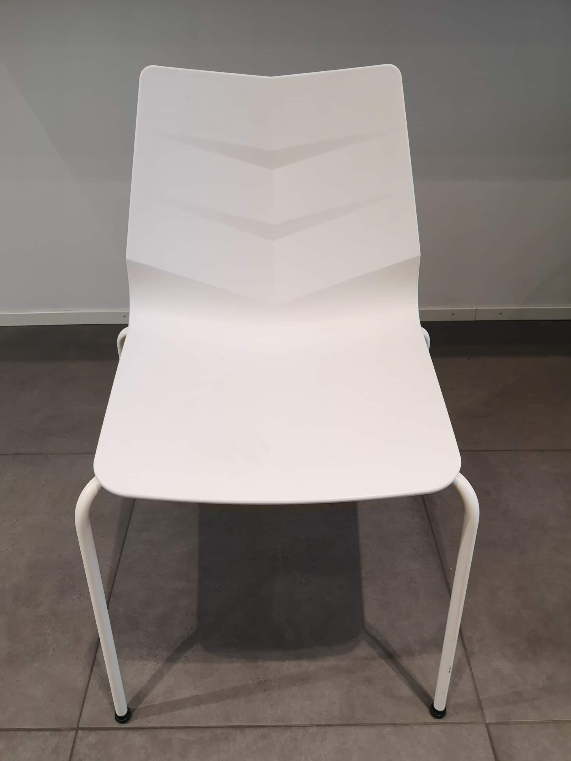 Seat and back in plastic (white). Legs in metal (white).
