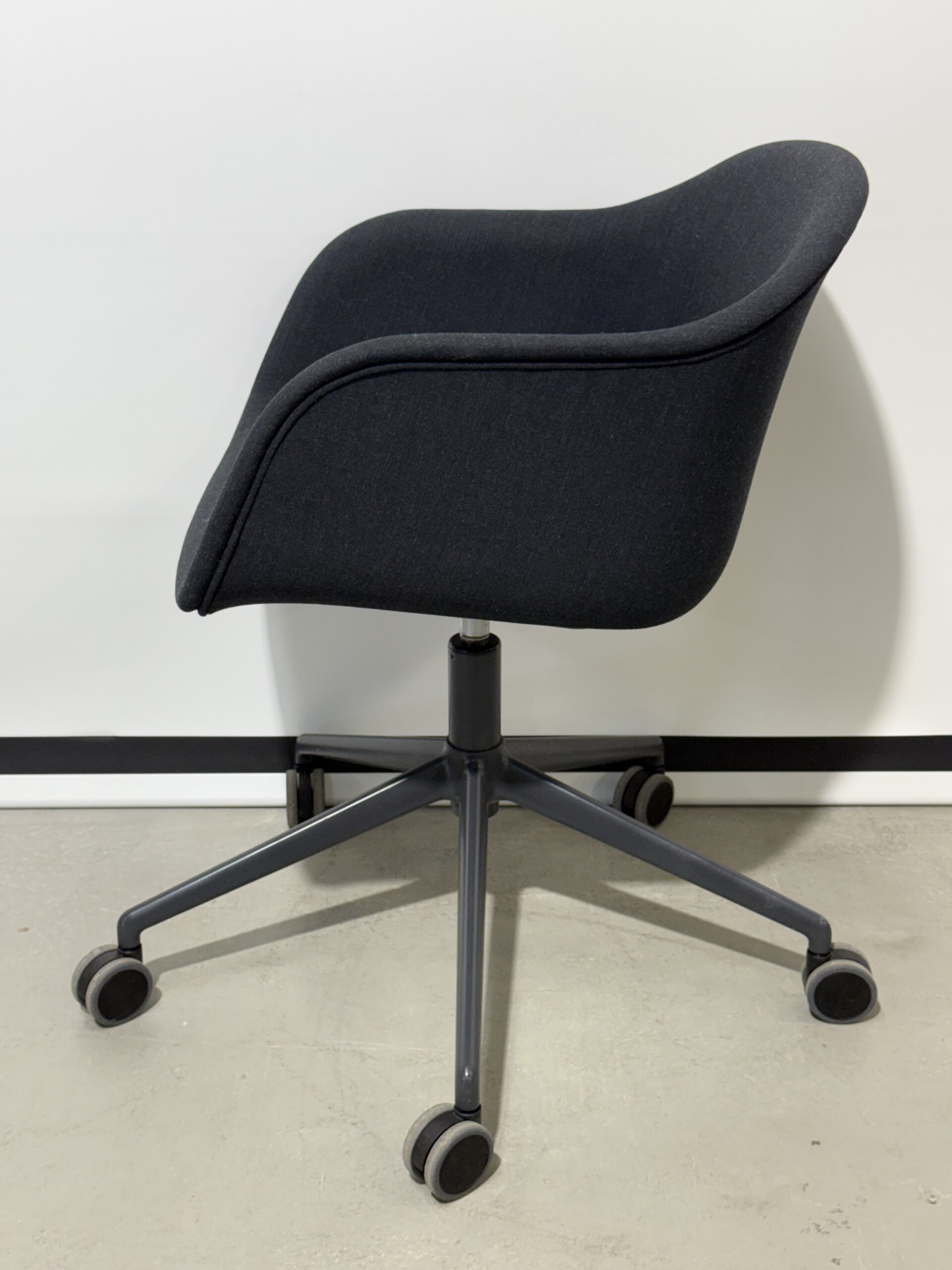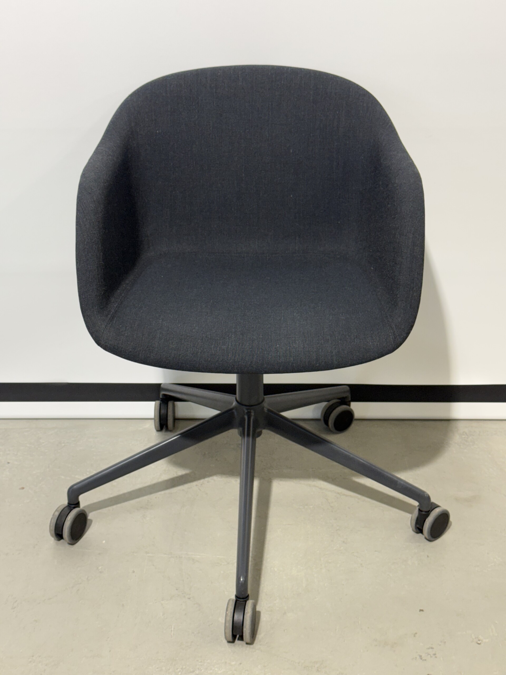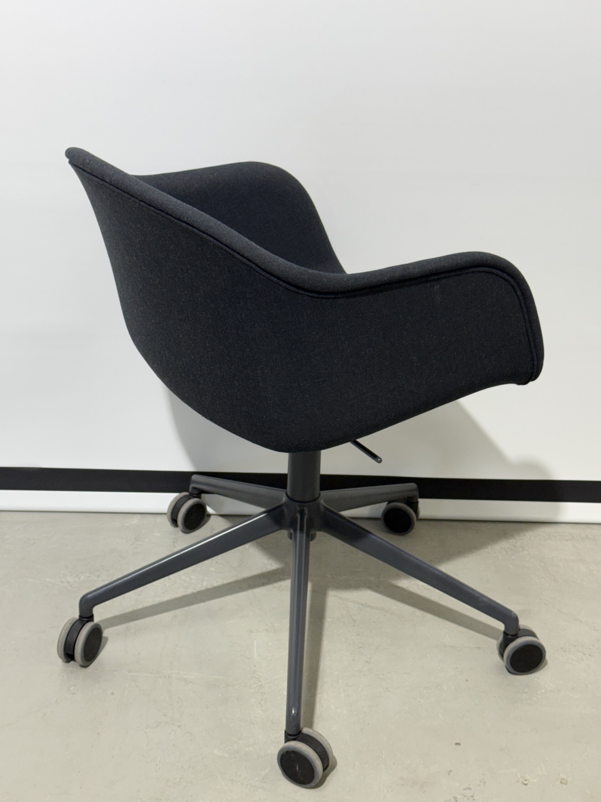 Seat and back in fabric (grey). Cross base in metal (grey). Height adjustable.