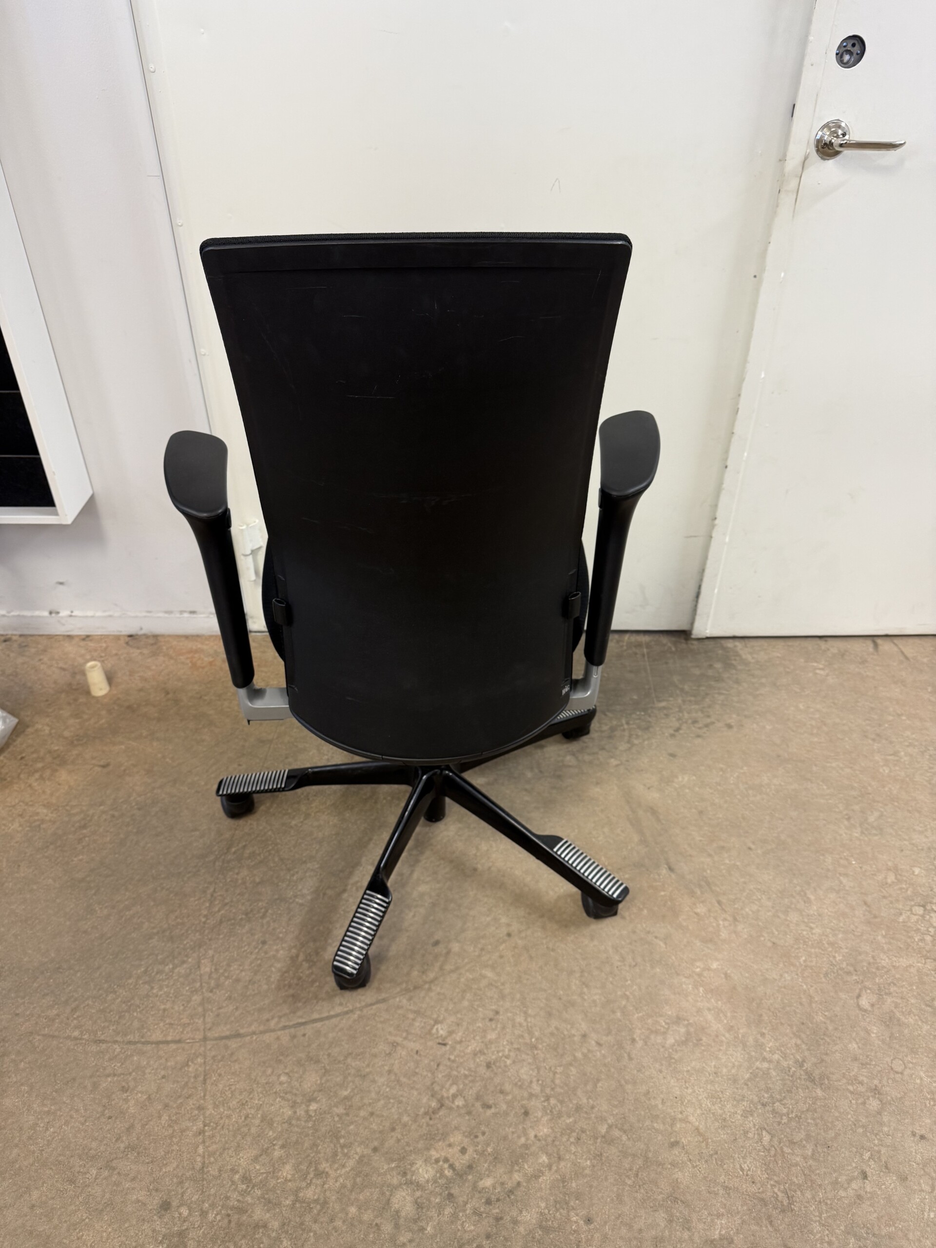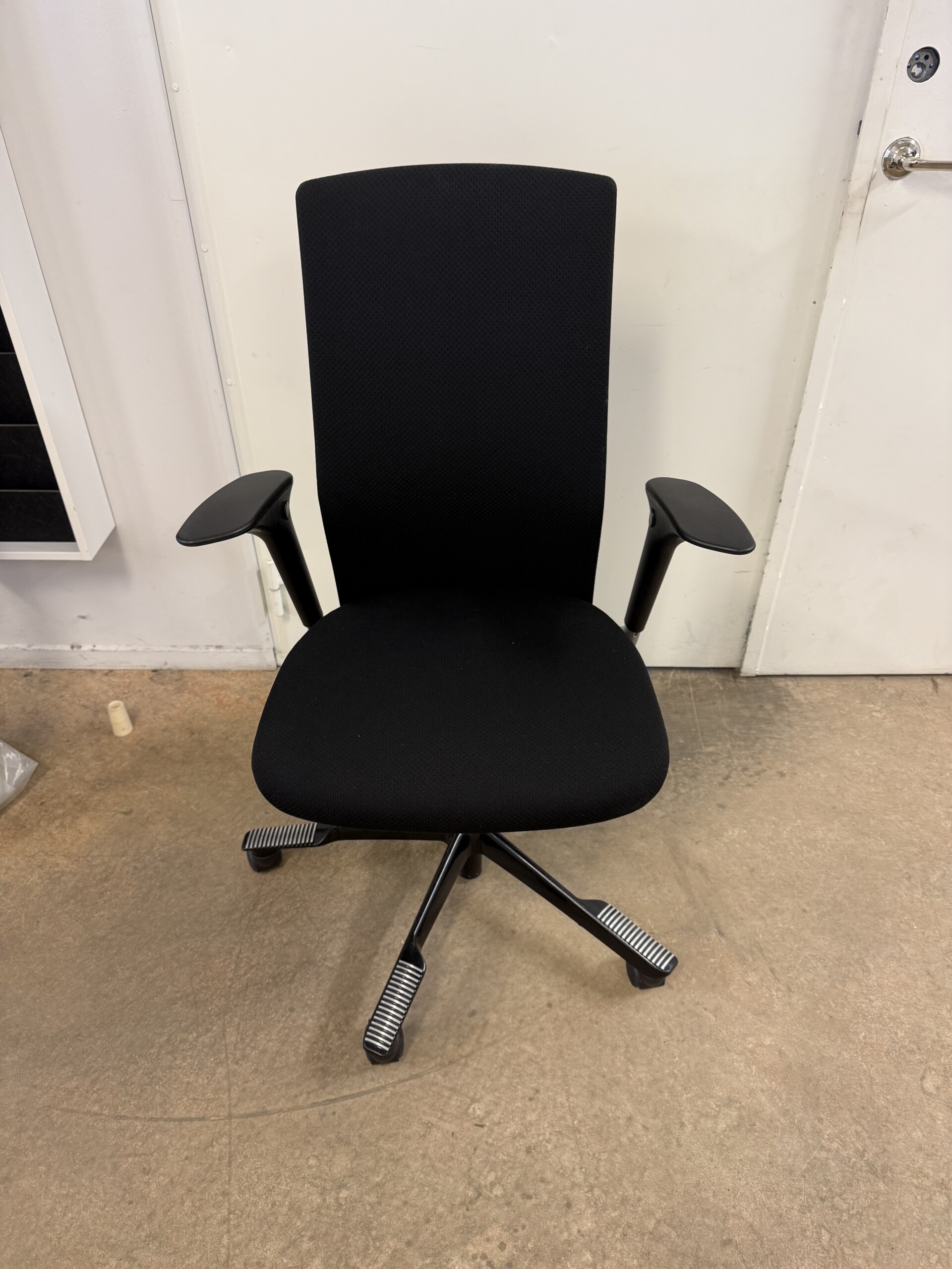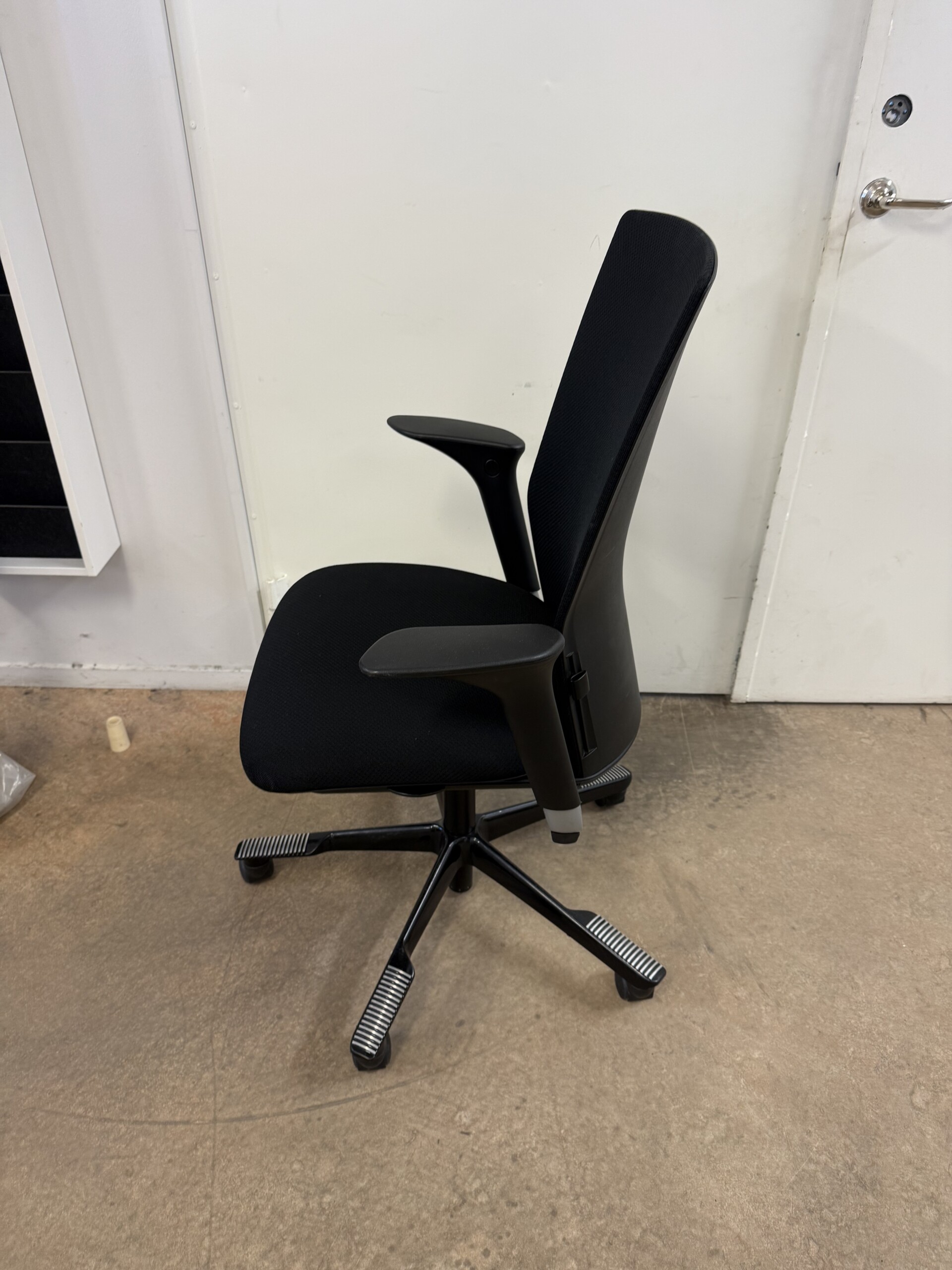 Seat and back in fabric (black). Cross base in metal (black). Height adjustable.