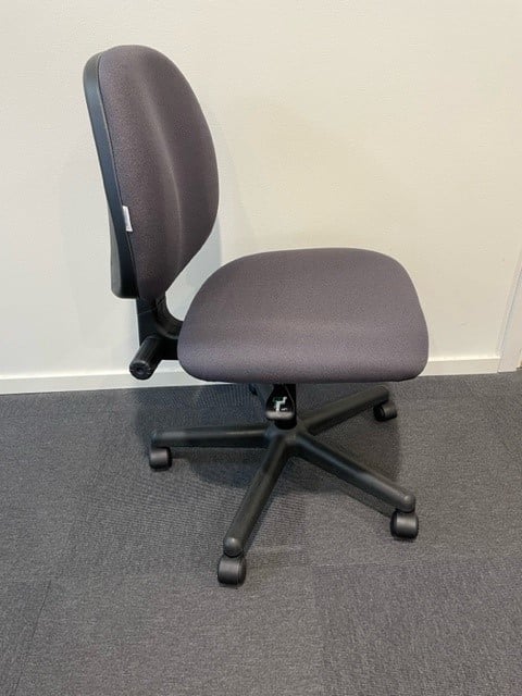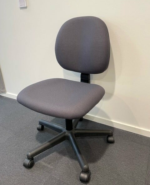 Seat and back in fabric (grey). Cross base in plastic (black). Height adjustable.
