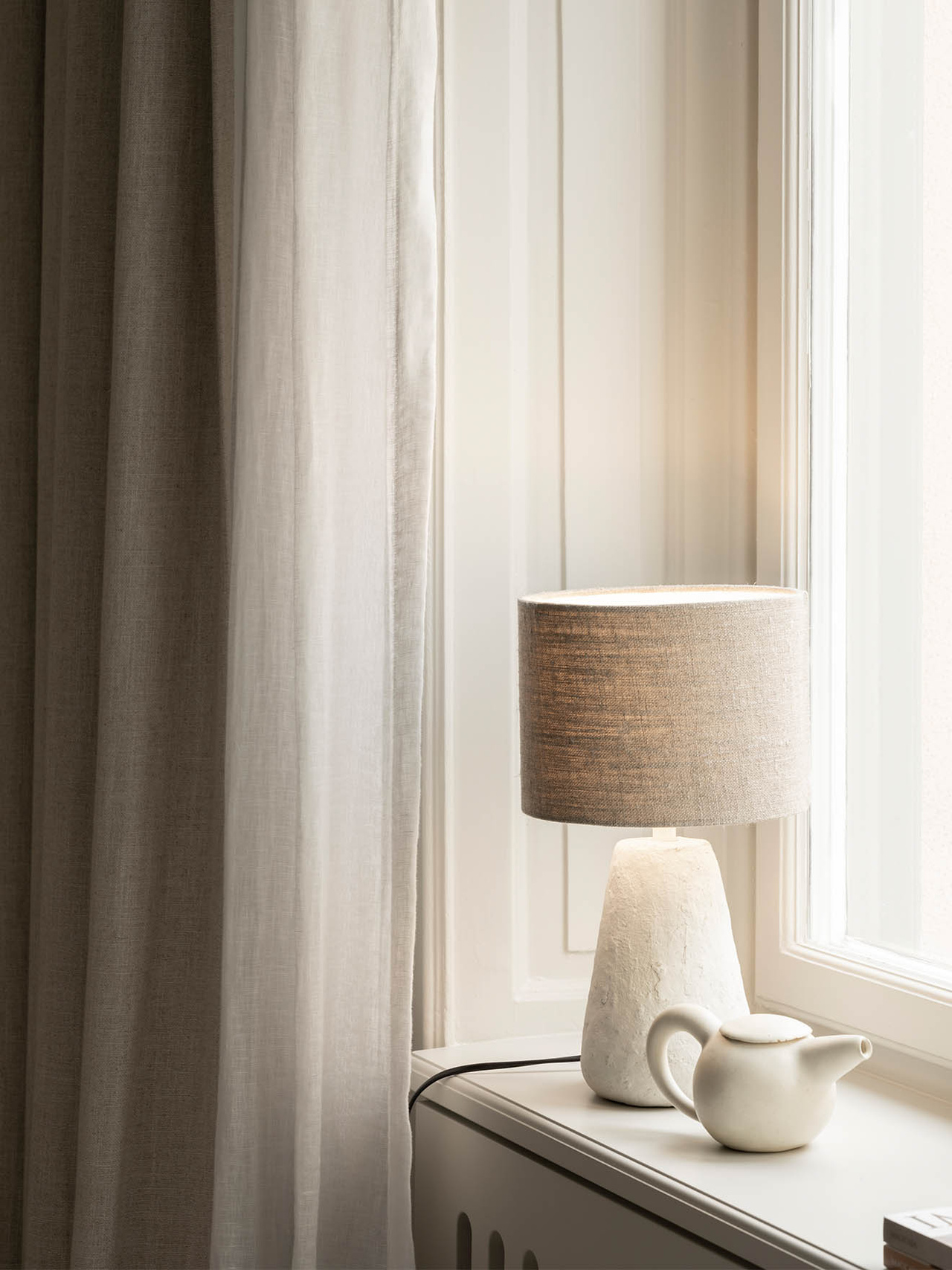 Beige, vit.