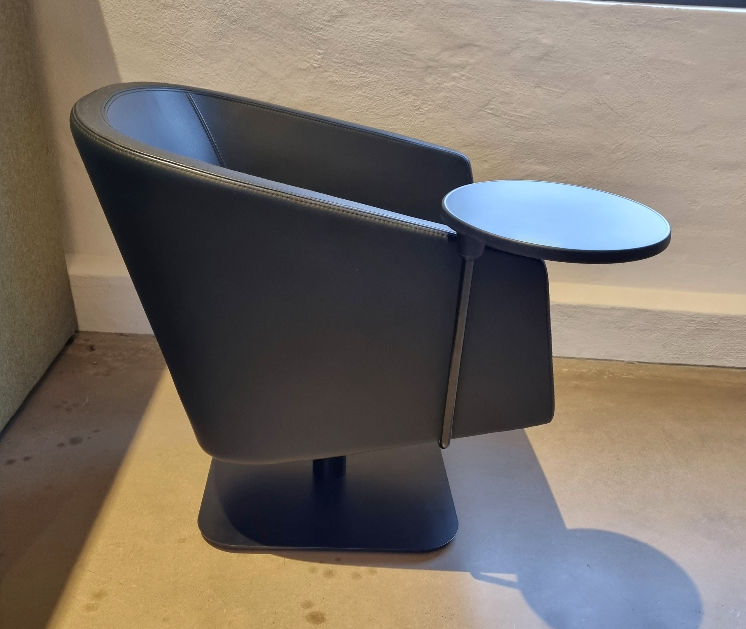 Seat and back in leather (black). Column base in metal (black).