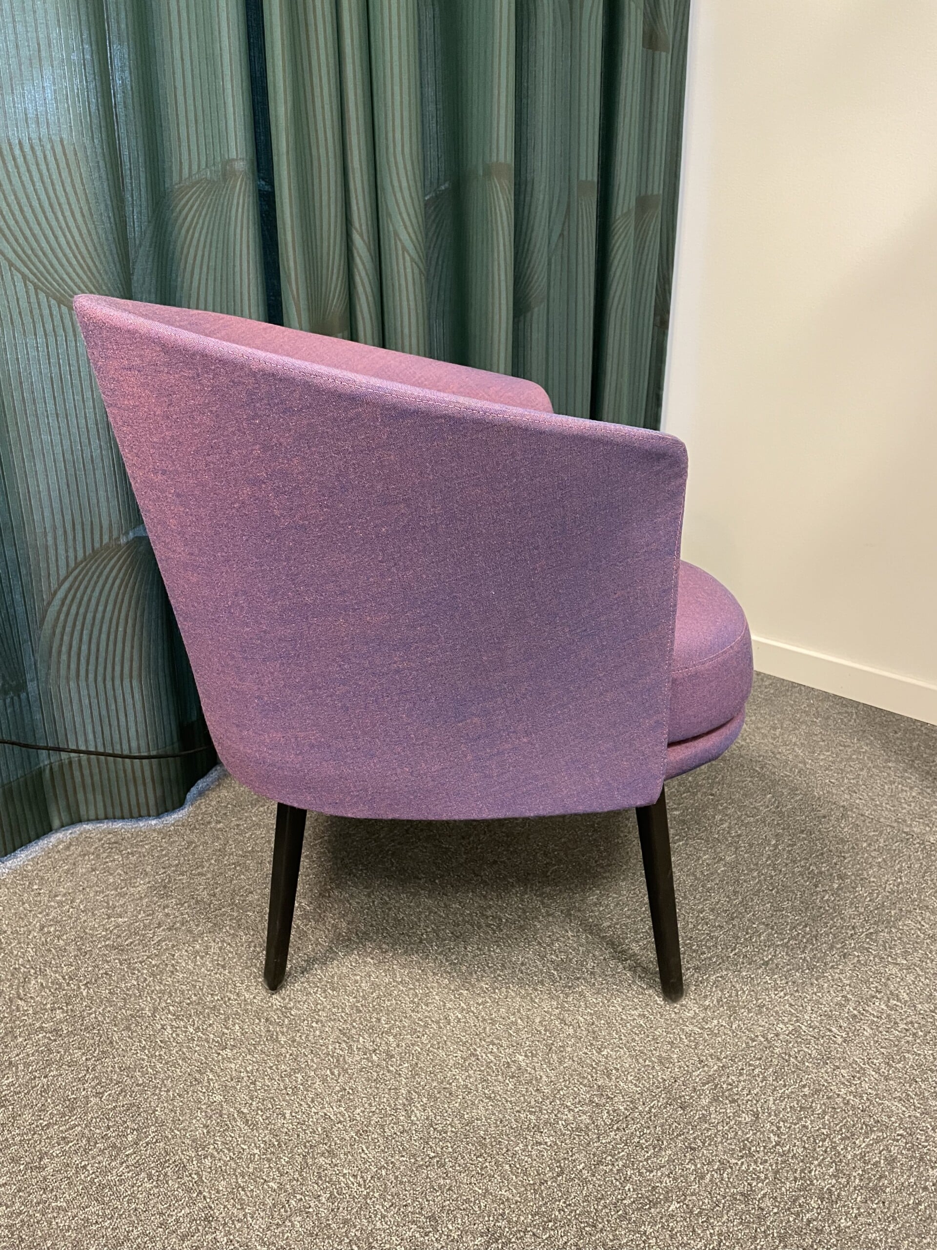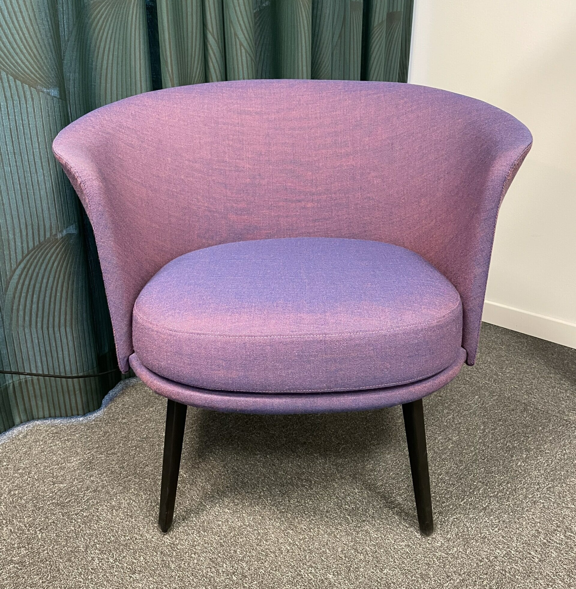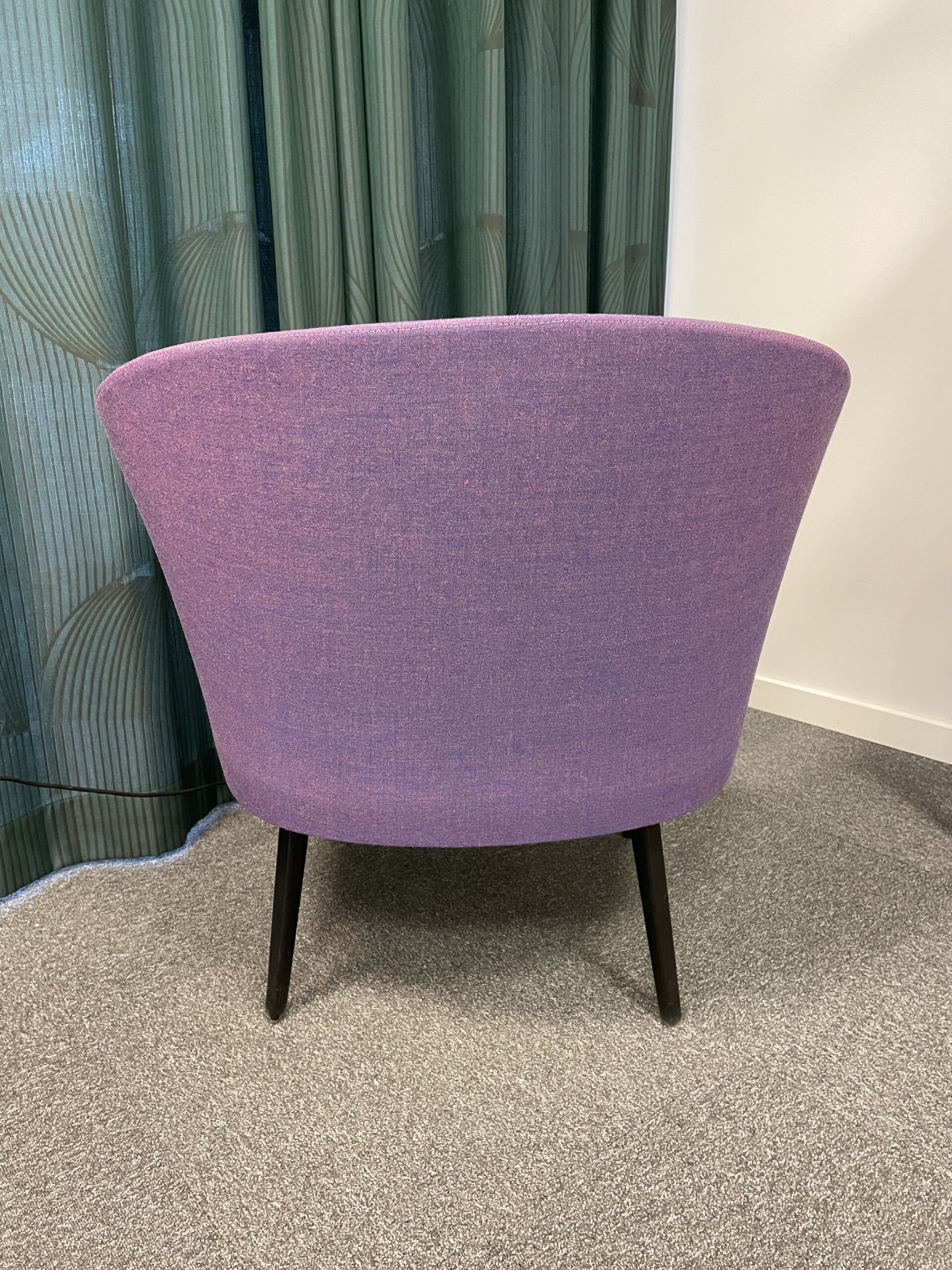 Seat and back in fabric (purple). Legs in metal (black).