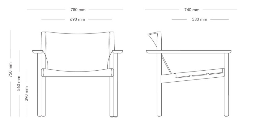 Width 780 mmDepth 530 mmSeat height 390 mm