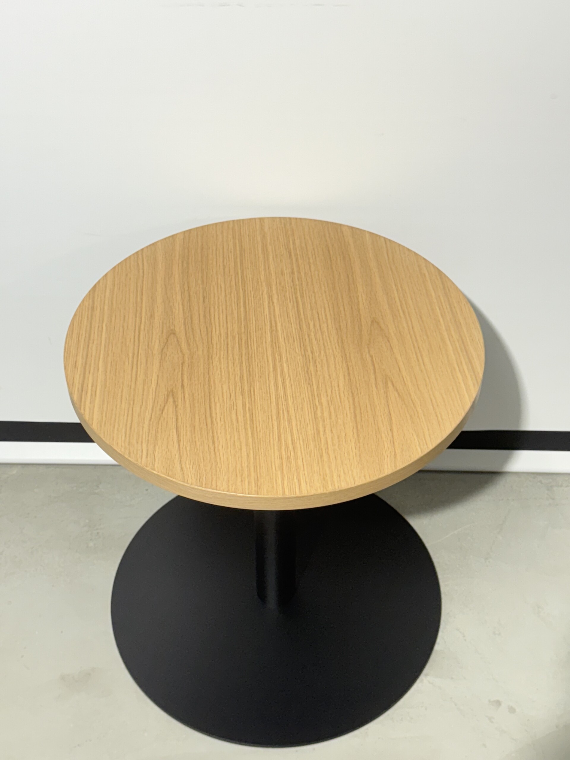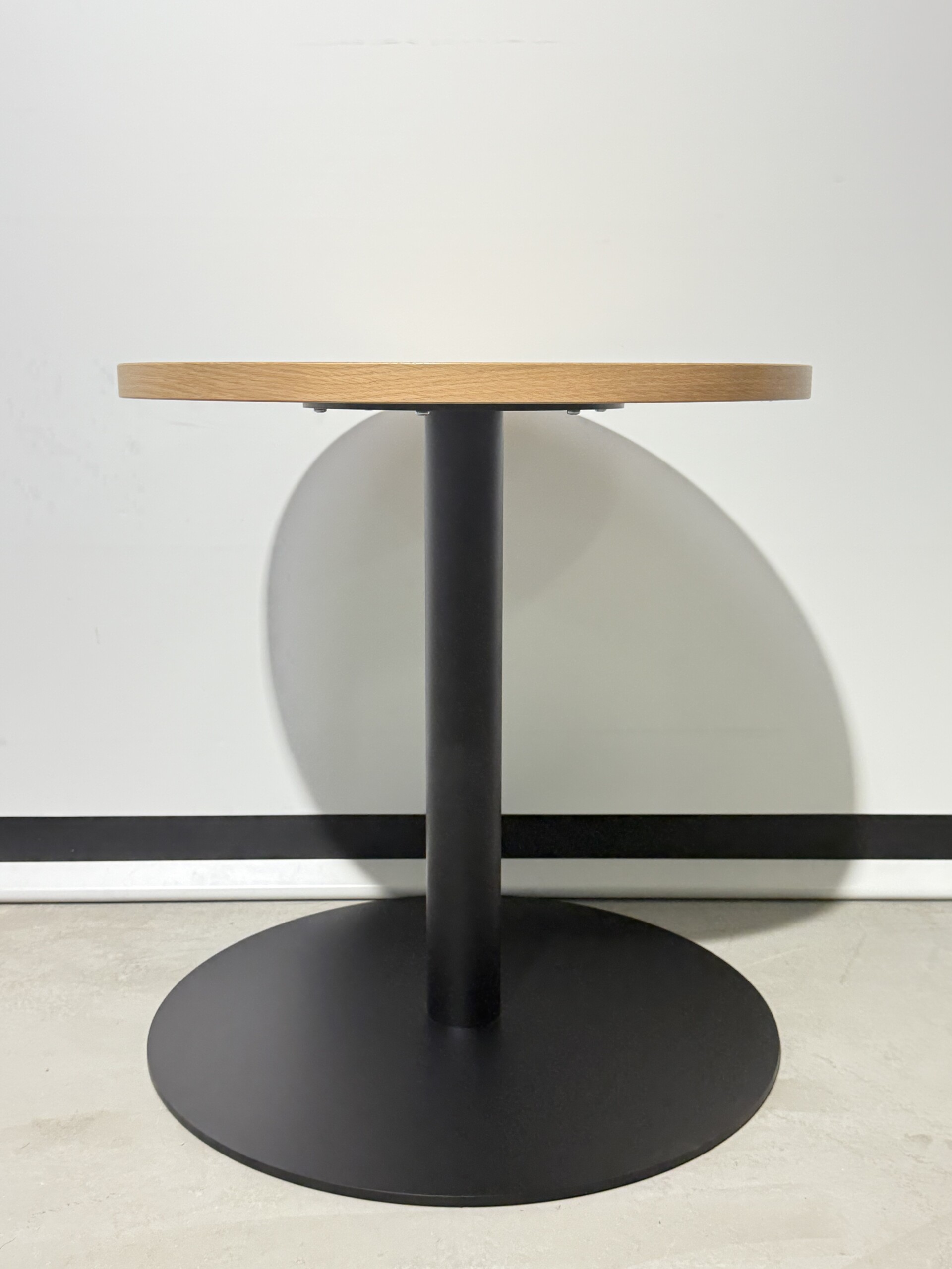 Tabletop in laminate (ash). Base in metal (black).