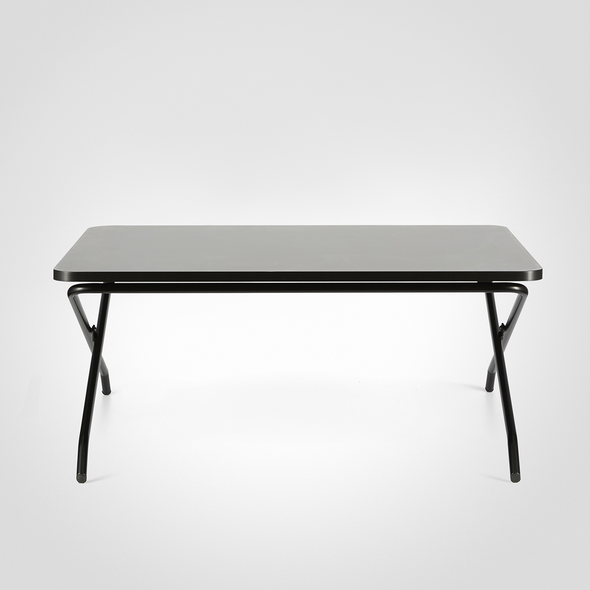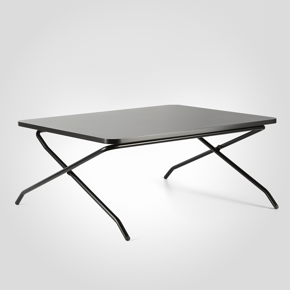 Tabletop in laminate (black). Base in metal (black). Height adjustable.