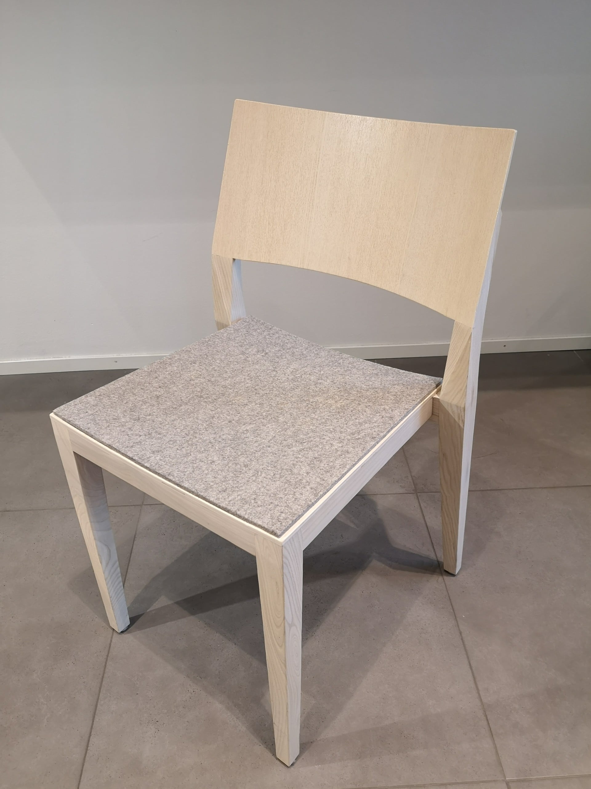 Seat in fabric. Back in wood (ash). Legs in wood (ash).