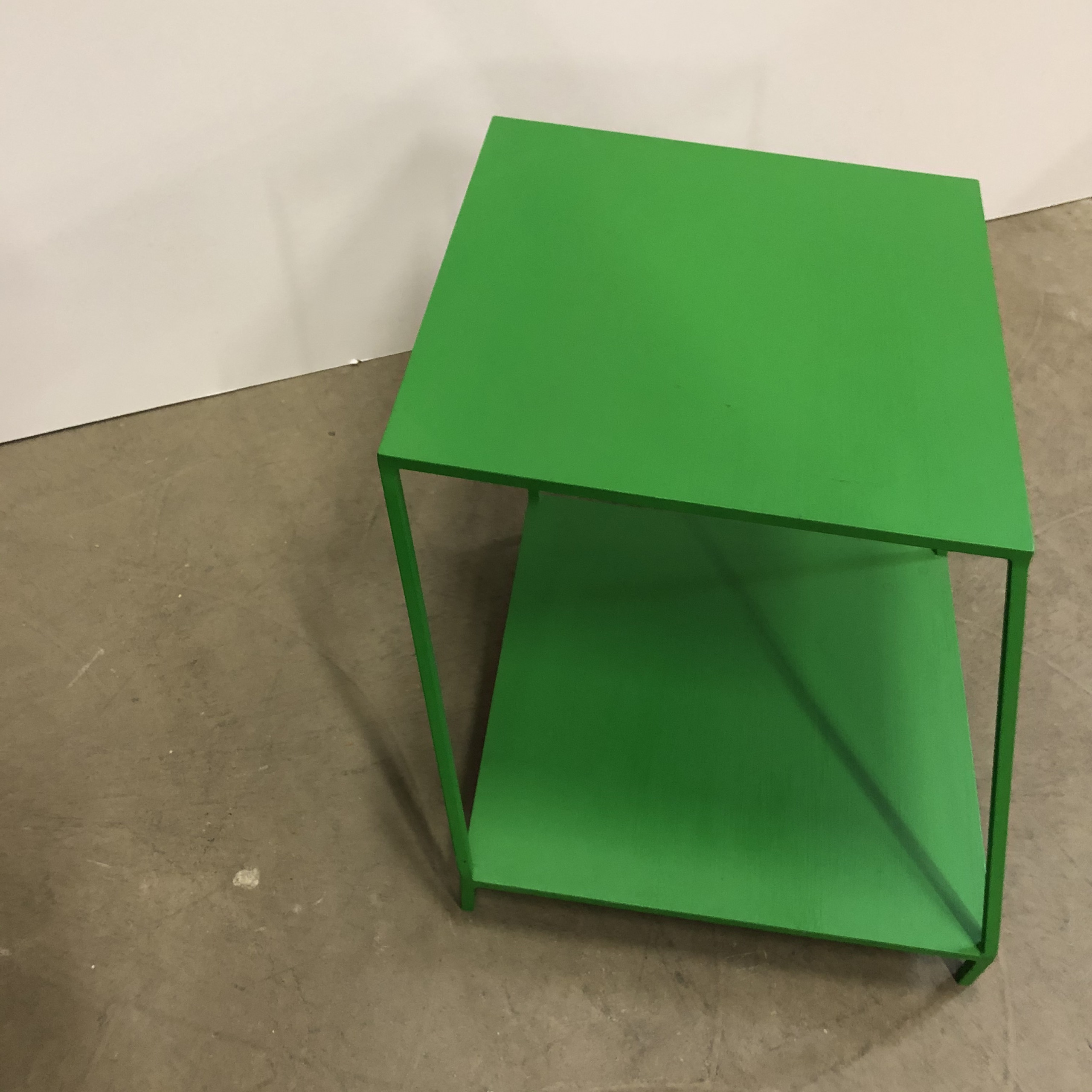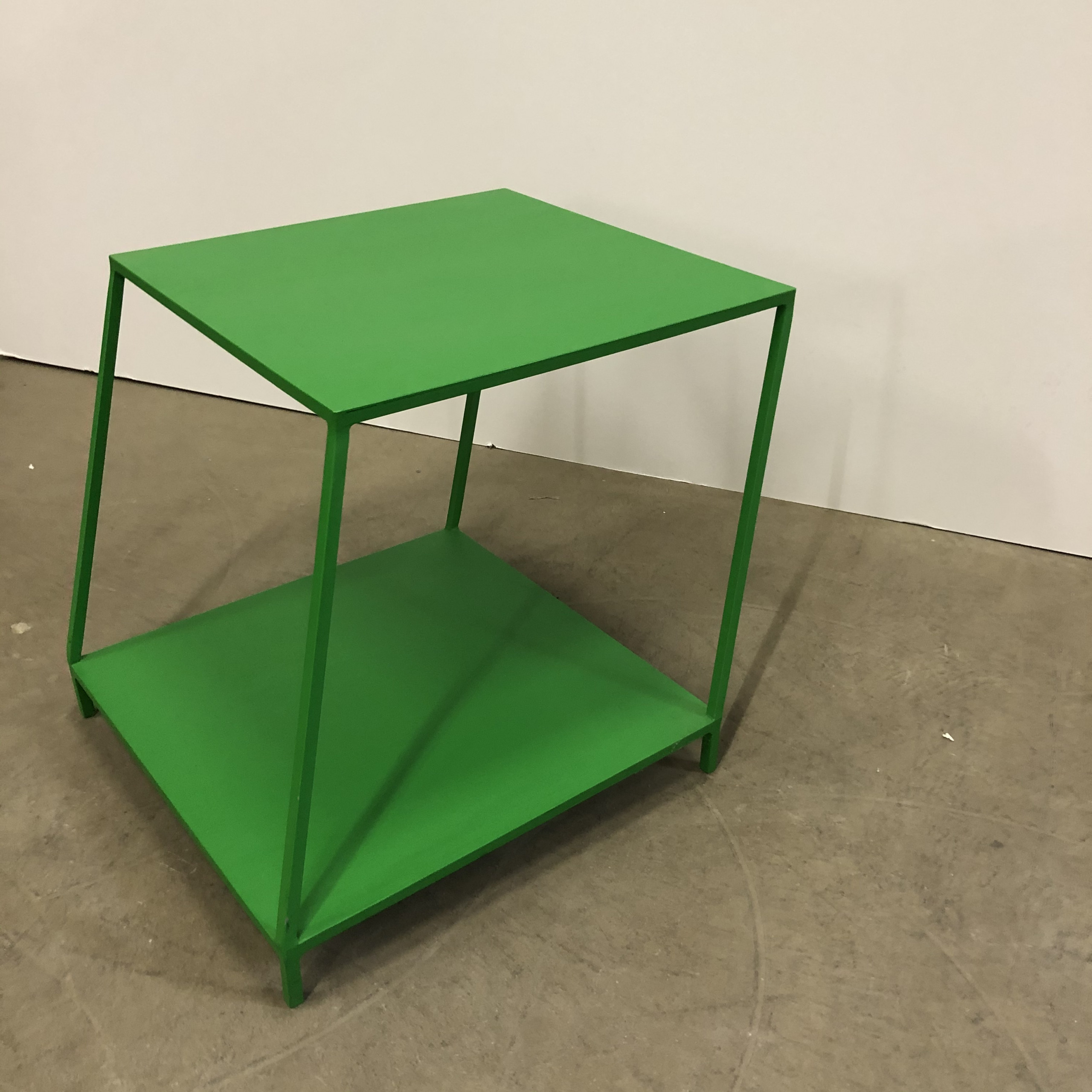Tabletop and base in metal (green).